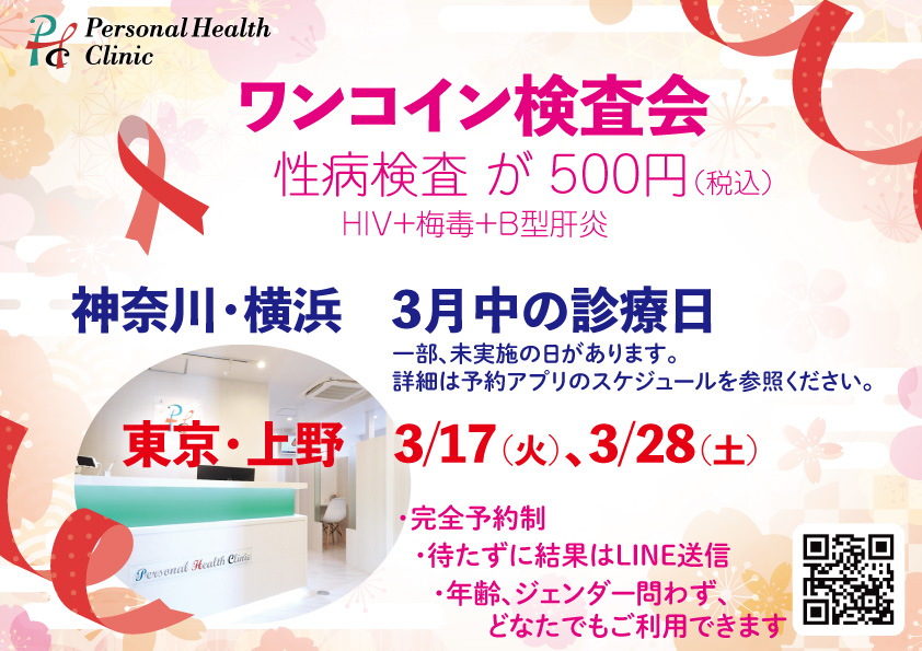 通常のワンコイン検査会が予約が取りにくいので、未成年の学生の方は、是非こちらをご利用ください。